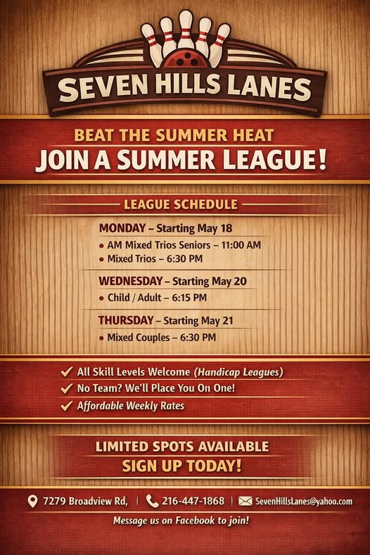 CALL (216) 447-1868 FOR INFO/SIGNUPS